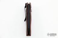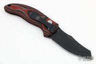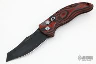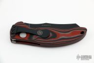 This Elishewitz design auto features a black recurve blade. The handle has black/grey/red G-10 frame with safety. Has black stainless steel pocket clip and lanyard at the butt. Has a few scuffs, otherwise excellent condition. Comes with a zippered case.