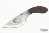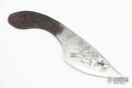 This utility knife blank from Miles Martin features a drop point blade with etched theme on flats. .113" Blade Stock. 1.141" Blade Depth. Fashioned from D2 steel. New from maker.