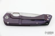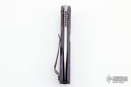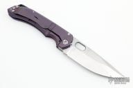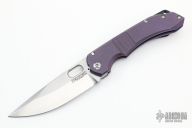The Navajo EDC framelock from Dervish Knives features a drop point, stonewashed blade with thumb hole and notched thumb rest. The handle is anodize and tumbled titanium with a black G10 backspacer. Tip up titanium pocket clip. Lanyard hole on pommel. Nice detent, lockup and blade seating. Excellent condition.