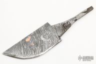 This knife blank from Miles Martin features a Damascus blade with copper forged into the blade. .179" Blade Stock. 2.0171" Blade Depth. Hardened to R60, soft back, cryo cold treated, double temper. New from maker.