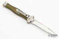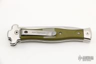 This Zero model features a black G-10 handle and a satin finished bayo blade. The AGA Campolin Zero automatic offers Italian-made craftsmanship at it's very finest. This model is characterized by a flawless fit and finish, rock solid blade lock up, and snappy automatic deployment. The Zero is definitely not your grandpa's Italian stiletto, with black G-10 handle scales, stainless steel bolsters, and a high performance N690Co steel blade. A stainless steel tip-down pocket clip finishes off the solid EDC design. Features: Aluminum handle scales offer a sleek look and a high-performance grip. Stainless steel pocket clip for comfortable everyday carry. Austrian Bohler N690Co blade steel provides a strong, durable blade edge. Comes with original box and papers. Excellent condition.
