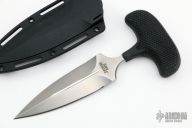 This Safe Maker I push dagger from Cold Steel has a satin finished chisel ground spear point blade with hollow ground backside and fuller on the front. Handle is non-slip. Excellent condition. Comes with a Secure-EX sheath with belt clip.