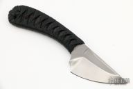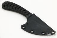 This Chisel Ground Fixed Blade by Bastinelli Knives features a drop point blade with notched thumbrest, .151" blade stock and 1.32" blade depth, hidden tang construction. The handle has black cord wrap over brown cord under wrap. Comes with kydex sheath. Has some light scuffs, otherwise great condition.