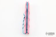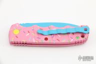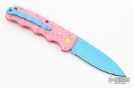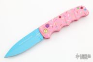 Have you ever been unfortunate enough to have to share a donut? Your plight only gets worse when you find you have to cover your high-speed, low-drag, modified, custom, mirror-edged piece of pocket jewelry in sticky sweetness. What you need is a knife designed from the ground up to go to war with a donut. And although its path to existence was unorthodox, the Dessert Warrior is here! This automatic will snap open before anyone can take more than their half of the donut. The handle is bright pink with sprinkles, and the blade has a candy blue finish, making the knife blend in with the pretty pastries of the shop. Gone are the days of not having the right tool for the job!