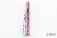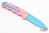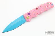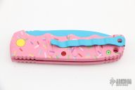Have you ever been unfortunate enough to have to share a donut? Your plight only gets worse when you find you have to cover your high-speed, low-drag, modified, custom, mirror-edged piece of pocket jewelry in sticky sweetness. What you need is a knife designed from the ground up to go to war with a donut. And although its path to existence was unorthodox, the Dessert Warrior is here! This automatic will snap open before anyone can take more than their half of the donut. The handle is bright pink with sprinkles, and the blade has a candy blue finish, making the knife blend in with the pretty pastries of the shop. Gone are the days of not having the right tool for the job!