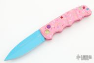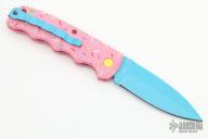 Have you ever been unfortunate enough to have to share a donut? Your plight only gets worse when you find you have to cover your high-speed, low-drag, modified, custom, mirror-edged piece of pocket jewelry in sticky sweetness. What you need is a knife designed from the ground up to go to war with a donut. And although its path to existence was unorthodox, the Dessert Warrior is here! This automatic will snap open before anyone can take more than their half of the donut. The handle is bright pink with sprinkles, and the blade has a candy blue finish, making the knife blend in with the pretty pastries of the shop. Gone are the days of not having the right tool for the job!