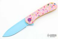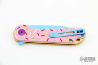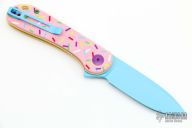 • Smooth donut pink G-10 handle with multi-colored sprinkles and hardware.
