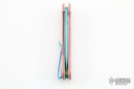 The most legendary EDC in the world just got a "hole" lot sweeter! This is our Blade HQ Exclusive Dessert Warrior Elementum! This new addition to the Dessert Warrior family features an icing-blue D2 blade and stainless steel liners frosted with pink G-10 and sprinkles.