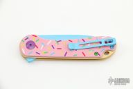 - Smooth donut pink G-10 handle with multi-colored sprinkles and hardware.
