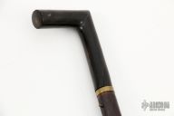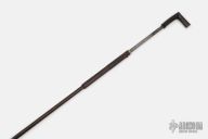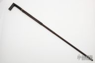 This cane has a hidden spike that deploys from the end of the cane. It is made completely of steel and has been carved to look like bamboo. The handle is carved buffalo horn. Push the button and pull back on the handle to deploy the spike. The spike is a fluted steel spike that is 8.25" long. Has a couple cracks in the horn handle, has some scuffs/scratches, otherwise good condition. This is a really cool sword cane and, like none other we have ever seen!