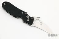 In the Philippines Visayan dialect, the literal translation of the word Pikal means to rip. In the U.S. the term Pikal remains relatively new but a company called Shivworks is making headway in its introduction to the American market. Its English definition is twofold: It is a rising martial arts genre and the name of a Spyderco knife designed to accompany this art form. As a self-defense platform, Pikal is carried out holding a knife in reverse grip with the sharpened edge facing inward toward the user. Pikal’s objective is not flowing drills with your opponent but rapidly and effectively striking and surprising. The Spyderco C103 P’Kal, offers features specific to this activity but these same features also translate well for everyday carry. The CPM S30V plain edge blade curves to a point. When held with the tip facing downward it feels natural and comfortable making pulling, downward cuts. Protruding from the top of the blade’s spine is a removable Emerson Opening feature. The device popularized and patented by Ernest Emerson of Emerson Knives, functions by catching the back of a pant’s pocket when drawing the knife, opening blade in the same motion. Spyderco’s P’Kal is designed for reverse grip use with a formidable choil on top of the handle that holds the little finger when gripping, affording better dexterity and control. Spyderco’s patented Ball Bearing Lock® sits above and behind the blade. The ball bearing component is housed in a plastic cover that’s accessible for both left and right hand opening. P’Kal clips in a pocket with a steel wire clip and carries tip-up. Made in Golden, Colorado U.S.A Earth Excellent condition.