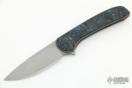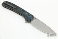 This Gent by Massdrop is a Ferrum Forge design. It features a stonewashed blade with flipper. The handle has Arctic Blue carbon fiber scales, tumbled titanium liners and tip up clip. Nice detent, lockup and blade seating. Has a couple light scuffs, otherwise excellent condition.