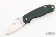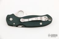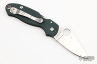 This Para 3 by Spyderco was a Knifeworks Exclusive. It  features a satin finished blade with thumbhole and notched thumbrest. The handle has green G-10 scales with stainless steel nested liners, 4-way reversible clip. Comes with original box and papers. New from maker.
