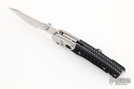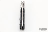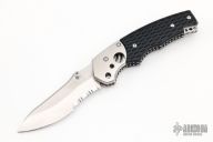 The SOG Pendulum MB-01 knife utilizes the SOG ARC-Lock system. When you use the dual-sided thumb stud to open the Pendulum, the bolster rotates out, then returns to the original position, locking the blade in place. To unlock the blade, you slide the bolster. The straight edge blade is made of VG-10 steel for superior edge retention. The textured glass reinforced nylon handle and notched liners provide a solid gripping surface. These features and more combine to make the Pendulum unique, stylish, and functional. Excellent condition.