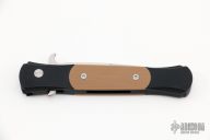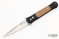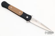 The Don by Pro-Tech has a satin finished blade and a black aluminum handle with brown G-10 inlay. First Production Run Serial number 188. Has a couple light scuffs, otherwise excellent condition.