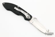"Ed Scott is a custom knifemaker and avid hunter living in South Africa. He consulted with numerous professional hunters searching for the perfect hunting knife design. After many prototypes he developed the Impala. Spyderco has unveiled two versions of the Impala: both have black G-10 handles that are comfortably sculpted and champhered to be easy on the hand during extended or difficult cutting. One version has a gut hook (double beveled and sharpened on both sides of the inside radius) positioned at the blade’s tip that vanishes fully into the contours of the handle when the knife folds closed. The second Impala is snubbed-nosed, muscled thick at the tip, and textured with furrows atop the tip’s spine and again behind the round hole. The texture creates a positioning point for the index finger focusing control over intricate cuts or caping. Both have blades 3 11/16” (94mm) long of VG-10 high carbon stainless steel that lock open with a Walker linerlock. Positioned for tip-down pocket carry, the clothing clip sits nested in a shallow crater milled out of the G-10 handle. The crater creates a lower profile for comfortable use. Principally designed for field use, a lanyard hole at the butt-end accepts a thong or lanyard cord, secondarily attaching the knife for the outdoorsman who misplaces knives in tall grass or around water."