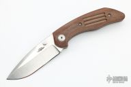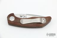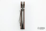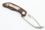 This Model 75 from Jesse Jarosz is the TAD Edition, it has a satin finished drop point blade with dual thumb studs and notched thumbrest. Handle has brown linen micarta scales with 3 milled lines, bead blasted titanium liners, black G-10 backspacer with lanyard pin, and satin finished tip up titanium clip with TAD's logo. Nice detent, lockup, and blade seating. Has some light scuffs and scratches, otherwise excellent condition.