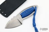 This Sumo by Peter Atwood features a .17" thick S30V, chisel ground main bevel sharpened on both sides, prytip/screwdriver on butt end, 5.25" OAL. The handle has paracord wrap and prybar at the butt. Comes with kydex sheath with small teklok. Comes with original card. Has some light scuffs and scratches, otherwise excellent condition.