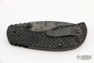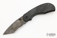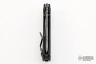 This RCC Linerlock by Strider features a tanto blade with notched thumbrest and dual thumbstuds. The handle has double gunner grip black G-10 scales, titanium liner and a flamed tip up titanium clip. Nice detent, lockup and blade seating. Has a couple scuffs, otherwise excellent condition.