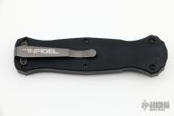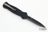 "Introducing an OTF like none-other.. The new Infidel® is rapidly making believers out of many a skeptic. Built for strength and reliability the patent pending double-action mechanics get it done over the long haul. Grab on and you will find the handle grip rock-solid with its patented machined in Presidio® style bi-directional tread pattern, and overall generous sizing for gloved hands. Intuitively pressure the release-slide forward and its spear-point edged steel fires and locks up with a unique three-point retention system with amazingly negligible blade play. Reverse the process and the blade retracts in a rapid blur of motion. The Benchmade Infidel is a special operator’s fantasy come true." Excellent condition.