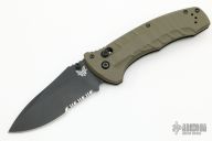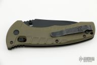 This model of the Benchmade Turret sports a black partially serrated blade made from CPM-S30V, and OD green G-10 handle scales.