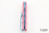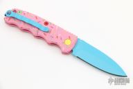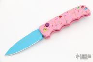 Have you ever been unfortunate enough to have to share a donut? Your plight only gets worse when you find you have to cover your high-speed, low-drag, modified, custom, mirror-edged piece of pocket jewelry in sticky sweetness. What you need is a knife designed from the ground up to go to war with a donut. And although its path to existence was unorthodox, the Dessert Warrior is here! This automatic will snap open before anyone can take more than their half of the donut. The handle is bright pink with sprinkles, and the blade has a candy blue finish, making the knife blend in with the pretty pastries of the shop. Gone are the days of not having the right tool for the job!