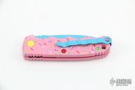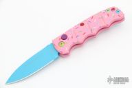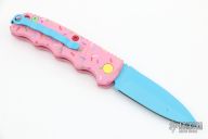 Have you ever been unfortunate enough to have to share a donut? Your plight only gets worse when you find you have to cover your high-speed, low-drag, modified, custom, mirror-edged piece of pocket jewelry in sticky sweetness. What you need is a knife designed from the ground up to go to war with a donut. And although its path to existence was unorthodox, the Dessert Warrior is here! This automatic will snap open before anyone can take more than their half of the donut. The handle is bright pink with sprinkles, and the blade has a candy blue finish, making the knife blend in with the pretty pastries of the shop. Gone are the days of not having the right tool for the job!