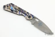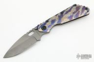 This SMF CC by Strider knives features a bead blasted 60 Nitonol PM blade and a digicam titanium handle with matching titanium clip, tip up carry, and a tumbled titanium backspacer. Notches on thumbrest, rear of handle, and lockup. Includes Hinderer "Lock Bar Stabilizer" for maximum reverse lock retention. Excellent condition. Comes with a nylon velcro case. This knife is super rare, probably will never see one again. Blade Steel: 60 Nitonol PM.  Excellent Condition.