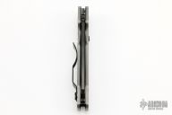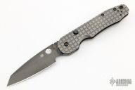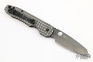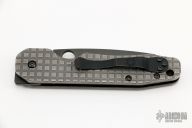 This Smock by Spyderco has black finish sheepsfoot style blade. The handle features Reylight titanium frag scales over stainless steel liners with a reversible tip up pocket clip. Excellent condition.