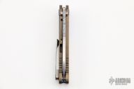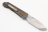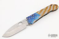 This 187 DPT Drop Point by Medford Knife and Tool features a stonewashed drop point blade with notched thumbrest and thumbhole. The handle has a stonewashed titanium frame and clip with American Flag laser engraving. Nice blade seating, detent and lockup. Comes with original box, hard case and papers. Excellent condition.