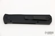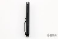 This 921 SWAT Godfather features a black blade with notched thumbrest. The handle has a black aluminum frame with black hardware, black push button and black stainless steel tip up clip. Comes with original box and papers. New condition.
