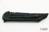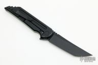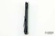 The Kwaiback MK6 by Hoback Knives features a black DLC blade with notched thumbrest and flipper. The handle has a Jade G-10 show side with a DLC titanium frame and tip up clip. Rides on bearings, nice detent, lockup and blade seating. Comes with original box, papers and tools. New condition.