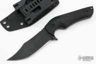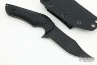 The Stryker is an extraordinary bowie style fixed blade knife with black Cerakote finish. It Features a strong clip point D2 blade with full tang construction complimented by a heavily milled, skeletonized handle that helps achieve a wonderful balance and also sheds the weight that is the enemy of those on the move. This knife has the unique advantage of heavy-duty durability that can handle the most adverse conditions while being extremely light weight. The handle's 3D machined black G10 handle scales are specifically contoured to naturally secure a strong, tight grip. Confident, controlled cuts are readily achieved with the jimped thumb ramp handle while intuitively designed ergonomics feature an arcing shape that feels natural in the hand and terminates at a sharp pommel. Each Stryker Fixed Blade knife includes a secure lightweight kydex sheath with a belt loop system.
