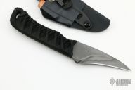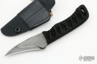This Corax by Windy Raven Knifeworks features a hawkbill blade with nice hamon, .185" blade stock and 1.213" blade depth, hidden tang construction. The handle has black cord over black twine. Comes with a kydex sheath with clip. Excellent condition.