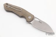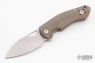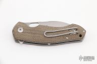 The handle fills even larger hands well, due to the nicely rounded scales and good ergonomics. Speaking of the handle, we chose to blast the black G10 and canvas Micarta for grippyness and great feel.