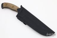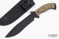 This Busse Combat knife is a Mr. Mojo features a black blade with .247" blade stock and 1.777" blade depth, full tang construction. The handle has canvas micarta scales. Comes with a kydex sheath with TekLok. Excellent condition.