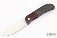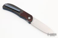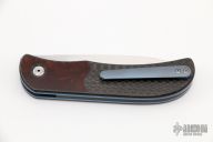 This LEXK Plus by Trevor Burger features a hand rub satin finished blade, notched front flipper and thumbrest. The handle features carbon fiber scales with inlaid desert iron wood burl bolsters, anodized titanium liners and tip up clip. Carbon fiber backspacer. Comes with a zippered case, and COA dated September 2019. Excellent Condition.