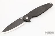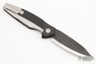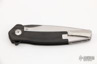 An ultralight weight, medium duty, flipper style folding pocket knife. Designed to be extremely light weight while still retaining full size (3.6” blade). With its carbon fiber bodied plain edge flat ground blade the entire knife weighs a mere 1.6 oz. The titanium hardware, handle scales and pocket clip are all 3d CNC machined, designed for comfort and ease of use. The action rides on fully ceramic custom bearings and snaps open incredibly fast using the flipper tab. It has a characteristic and satisfying double click opening action sound. The knife is mostly carbon fiber but uses a variation on the titanium integral frame lock design to keep the knife open against hardened steel inserts. Each piece is engraved with the model name and individual serial number on the backspacer. Each knife is machined, heat treated, hand finished, tested in house and proudly made in the USA.