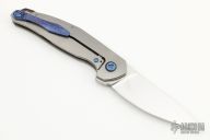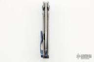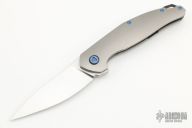 This Neo by Jens Anso features a hand rub satin finished blade with notched flipper. The handle has a checker milled titanium frame with timascus tip up clip and backspacer with lanyard hole. Has a stainless steel lockbar insert and over travel stop. Rides on bearings. Nice detent, lockup and blade seating. Comes with a original box and COA dated July 2022. Has a couple light scuffs, otherwise excellent condition.