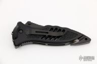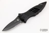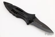 This Dieter CQD Mark 1 Auto from Masters of Defense has a black coated 154CM stainless steel partially serrated blade with dual thumb studs. Handle is black aluminum with non-slip inserts, titanium tip down reversible clip, seatbelt cutter and lanyard hole. Includes nylon sheath, box and papers. Excellent condition.
