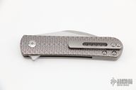 This MBK Slayback by Monterey Bay Knives is a Ray Laconico design, it features a satin finished ZDP-189 San Mai blade with notched flipper. The handle has a laser engraved titanium frame with stainless steel liner, tip up titanium clip. Comes with zippered case. Excellent Condition.