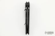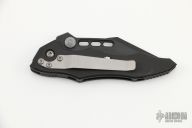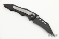 This Vector manual folder from Microtech features a black blade with dual thumb studs and notched thumb ramp. The handle is comprised of black anodized aluminum frame with non slip inserts over green barrel spacers. Stainless steel inlaid lockbar. Stainless Steel tip down clip. Dated 8/99. Comes with original box, papers, and nylon sheath. Has a couple light scuffs, otherwise excellent condition.