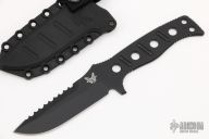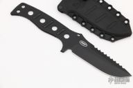 This Fixed Adamas fixed blade combat knife was designed by Shane Sibert. The black finished D2 steel drop point blade has a plain cutting edge and jimping on the spine. The handle is skeletonized with optimally positioned grooves. The Fixed Adamas knife also comes with a black molded sheath with secondary locking strap and tension screw for secure storage and custom tuned deployment.