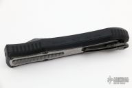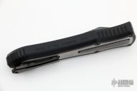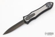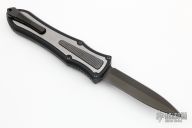 This knife is a Deadlock Model C by Grant and Gavin Hawk. It has a double-edged black blade. The handle has a black aluminum frame with stonewashed titanium overlays, a tip down spring clip, titanium. The thumb slide on the handle is also titanium and handle has titanium overlays. Comes with a cloth pouch. Grant and Gavin Hawk set out to create a double action OTF with no blade play.... They did it, NO blade play. Comes with tool and cloth case. Excellent condition.
