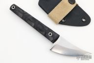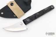 This Neck Knife by Blackie Blades features a satin finished scandi ground blade with .095" blade stock and 1.261" blade depth, full tang construction. The handle has sculpted black G-10 scales. Comes with a kydex neck sheath. Has a couple light scratches, otherwise excellent condition.