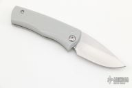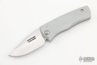 This friction folder by David Lancaster Clark features a satin finished blade with gray G-10 scales. Titanium standoff. Comes with COA. New from maker.