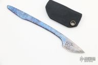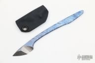 This All-Ti Kiridashi by Warren Thomas has a chisel ground "fingerprint" anodized titanium blade with carbidized edge, .119" blade stock and .601" blade depth. Handle is fingerprint anodized titanium. Has some scuff and scratches, otherwise good condition. Comes with kydex sheath.