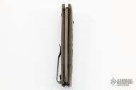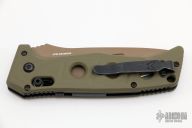This Siebert designed 2750FE-2 Adamas Auto Axis Lock has a FDE coated drop point blade with fullers and notched thumbrest. Handle is OD G-10 over black stainless steel liners, reversible tip up black stainless steel clip, and spine safety button. Includes tan nylon sheath. Comes with original box and papers. Excellent condition.