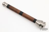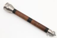 This Titanium Pocket Mace by Patrick Ober features a stacked leather and black linen micarta shaft with tumbled titanium ends. The head is 2" in diameter and the butt is 1.25" in diameter. New from maker!