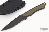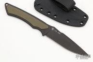This Phrike features a CPM S35VN blade with Flat Black coating (SpartaCoat - PVD - DLC) and a green G10 handle. Includes a kydex sheath. Excellent condition.